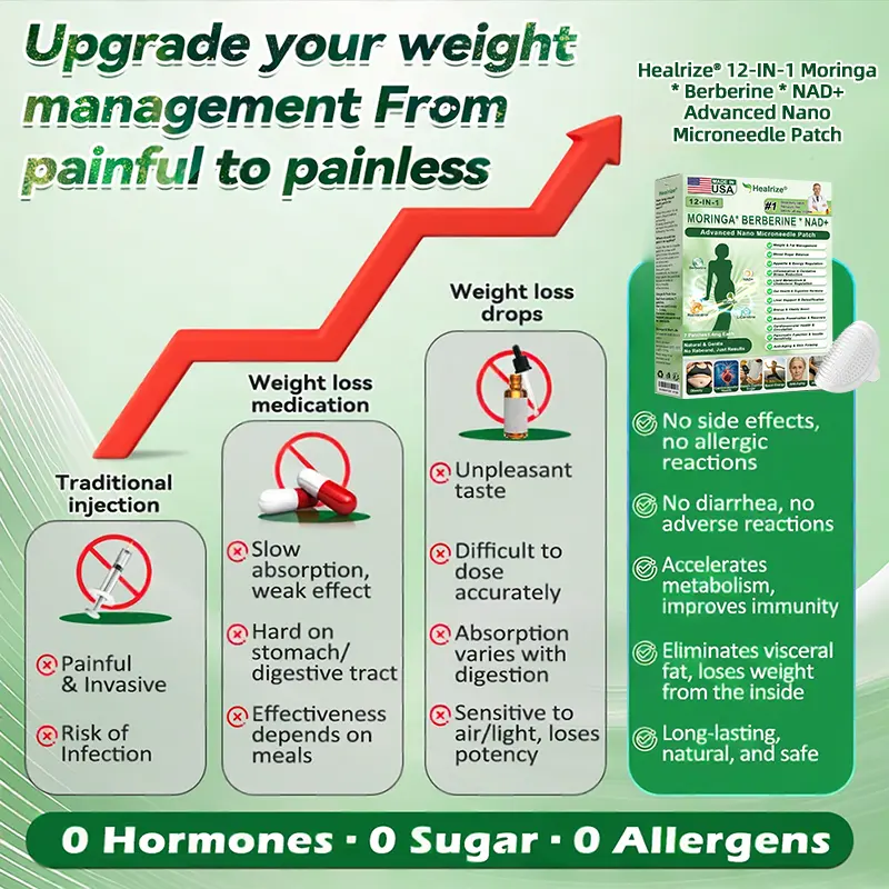 “We are a professional team with extensive clinical and research experience in the field of endocrinology, and many of our members have personally experienced obesity and its related complications. We have also tried a wide range of common weight-loss products available on the market, often with very limited results. These firsthand experiences motivated us to develop a solution for metabolic health and weight management that is safe, natural, and truly effective. After 12 years of continuous research, our team first conducted self-testing and successfully broke through the limitations of traditional single-pathway 𝑴𝒐𝒓𝒊𝒏𝒈𝒂 mechanisms. By utilizing a dual-pathway 𝑴𝒐𝒓𝒊𝒏𝒈𝒂 approach, we achieved significant improvements in weight reduction and metabolic health, with no rebound effects and no adverse reactions. We then conducted large-scale studies and clinical trials involving more than 5,000 participants, which further validated the performance of H𝐞a𝐥r𝐢z𝐞® 1𝟐-𝐈N-1 M𝐨r𝐢n𝐠a * B𝐞r𝐛e𝐫i𝐧e * N𝐀D+ 𝐀d𝐯a𝐧c𝐞d N𝐚n𝐨 𝐌i𝐜r𝐨n𝐞e𝐝l𝐞 𝐏a𝐭c𝐡in metabolic regulation, appetite control, and overall wellness—showing especially strong results among adults over 40 with overweight or obesity. Supported by contemporary medical research, H𝐞a𝐥r𝐢z𝐞® 1𝟐-𝐈N-1 M𝐨r𝐢n𝐠a * B𝐞r𝐛e𝐫i𝐧e * N𝐀D+ 𝐀d𝐯a𝐧c𝐞d N𝐚n𝐨 𝐌i𝐜r𝐨n𝐞e𝐝l𝐞 𝐏a𝐭c𝐡 has passed the FDA’s rigorous regulatory review and certification, with its safety, effectiveness, and compliance formally recognized. It represents a scientific advancement beyond traditional 𝑴𝒐𝒓𝒊𝒏𝒈𝒂 solutions, offering a natural, safe, and effective option for individuals seeking comprehensive metabolic support and long-term weight management.”
