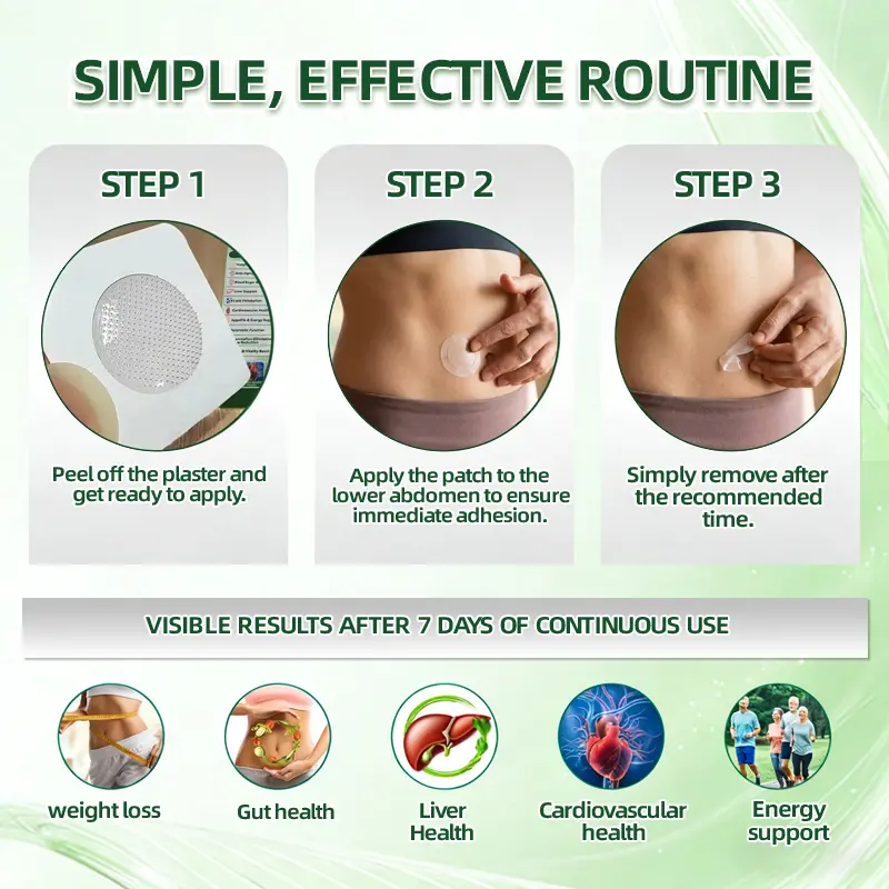 ✅ Efficient Transdermal Absorption: The patch utilizes transdermal absorption technology, allowing active ingredients to bypass the gastrointestinal system and enter the microcirculation through the skin to exert their effects. This approach is gentler on the stomach and intestines, making it particularly suitable for individuals with sensitive digestive systems.