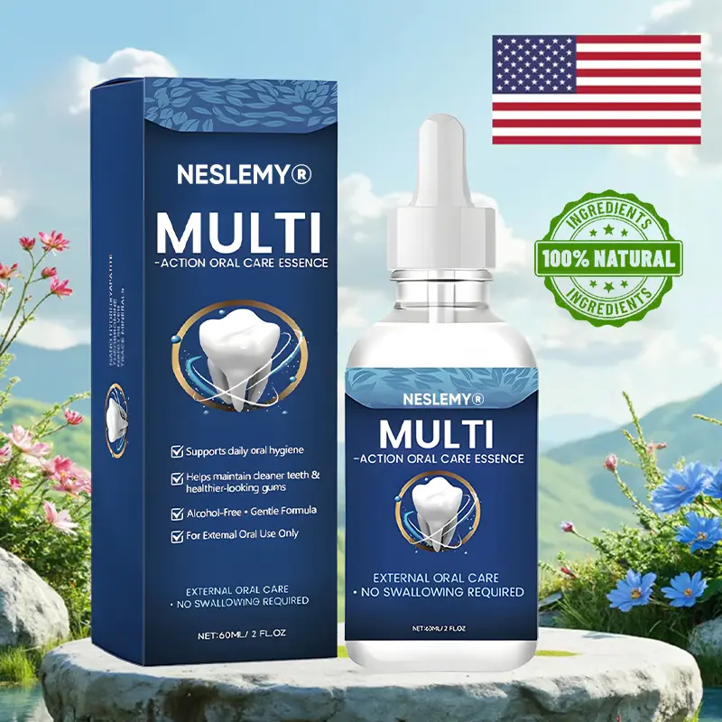 Unlike harsh mouthwashes or aggressive treatments, NESLEMY® Multi-Action Oral Care Essence is designed for external oral care — working gently on teeth surfaces and gum lines where daily issues begin.